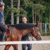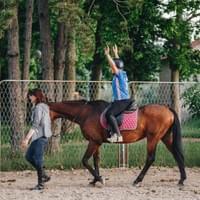 Slijedi prvo uzjahivanje uz pomoć instruktora, vježbanje sjedenja u sedlu, ravnoteže tijela i kontakta s konjem.