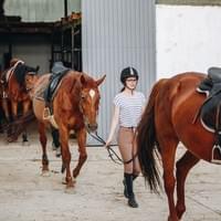 Zatim slijedi upoznavanje s konjem na tlu – vođenje na povocu, čišćenje, stavljanje opreme i vježbanje osnovnih signala bez jahanja.